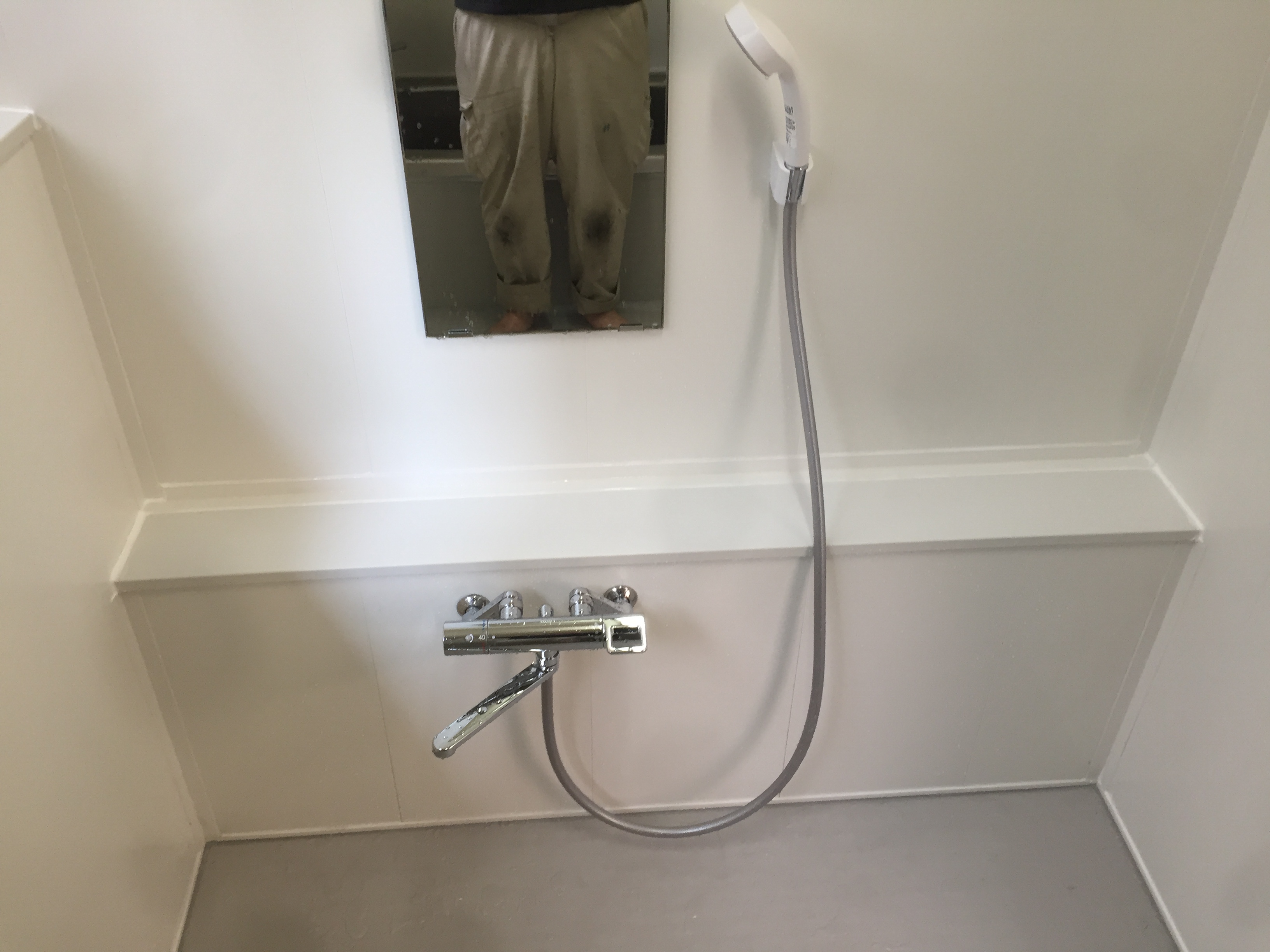難しい場合に浴室用壁面パネル及び床材の施工です